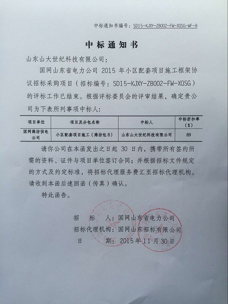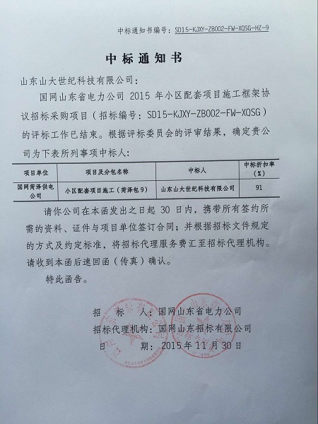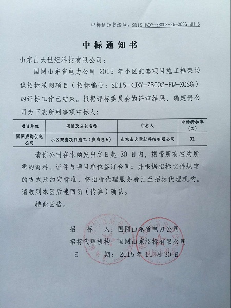祝賀公司中標(biāo) 國網(wǎng)小區(qū)配套施工框架協(xié)議 菏澤、威海、濰坊包