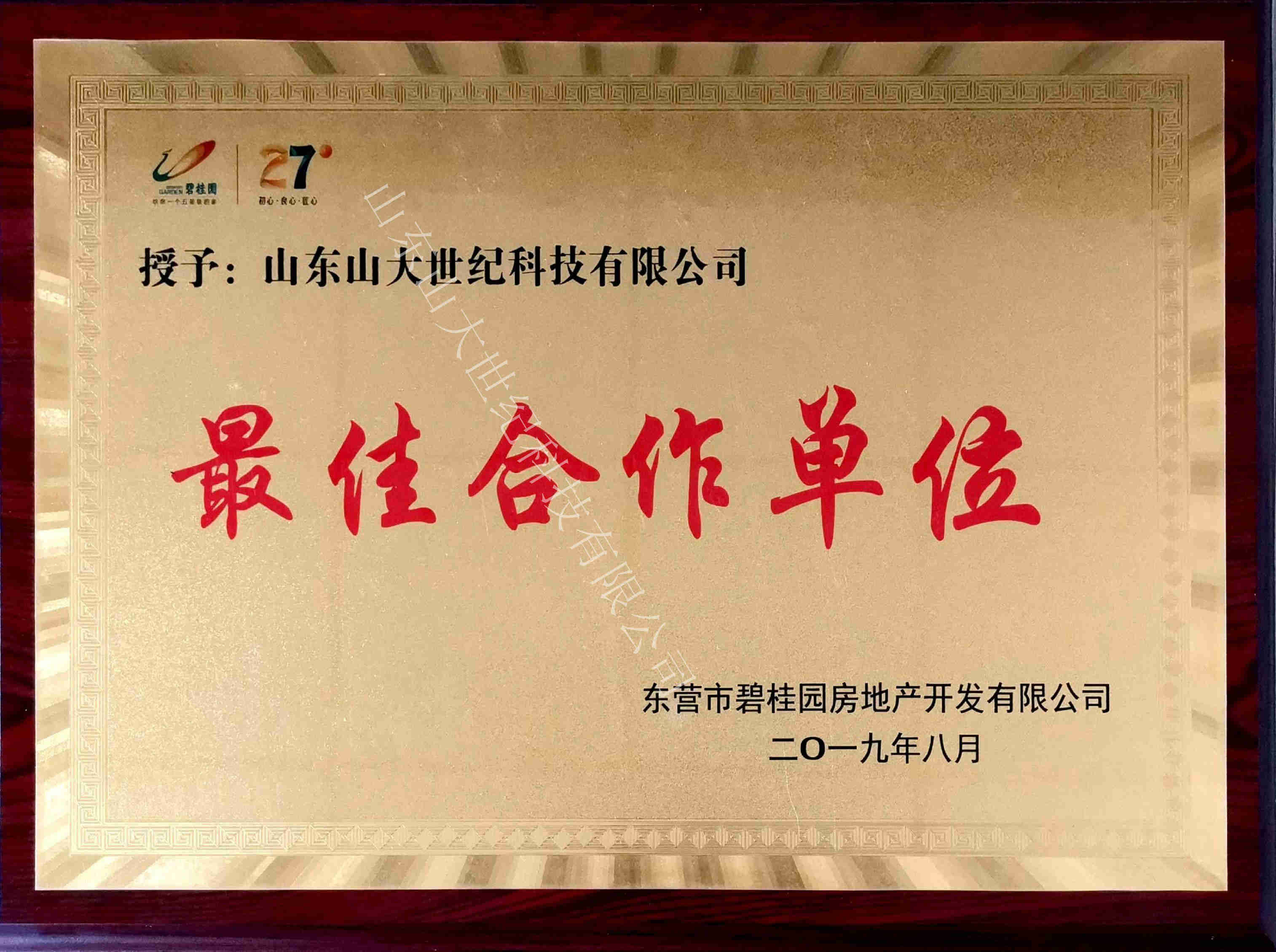 天的努力作業(yè),山東山大世紀(jì)科技有限公司按期完成東營(yíng)碧桂園天璽項(xiàng)目的送電,在諸多合作單位中,山東山大世紀(jì)科技有限公司被東營(yíng)市碧桂園房地產(chǎn)開發(fā)有限公司授予“最佳合作單位”榮譽(yù)稱號(hào)。