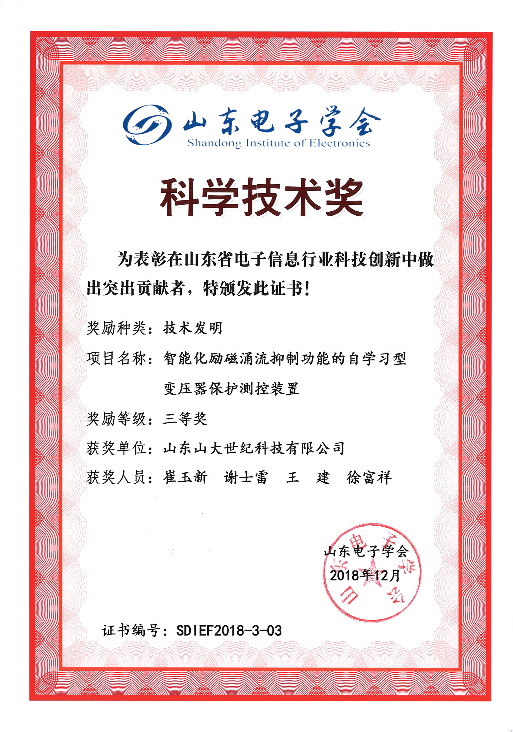 2019 年度“山東電子學(xué)會(huì)科學(xué)技術(shù)獎(jiǎng)”自7 月份啟動(dòng)以來(lái),經(jīng)各有關(guān)單位推薦、企業(yè)自主申報(bào),共有107 個(gè)項(xiàng)目參與自然科學(xué)類、技術(shù)發(fā)明類、科技進(jìn)步類評(píng)審。根據(jù)《山東電子學(xué)會(huì)科學(xué)技術(shù)獎(jiǎng)管理辦法》的規(guī)定,經(jīng)山東電子學(xué)會(huì)科學(xué)技術(shù)獎(jiǎng)勵(lì)專家評(píng)審委員會(huì)初評(píng)組、終評(píng)組評(píng)審,共產(chǎn)生一等獎(jiǎng)6 項(xiàng)、二等獎(jiǎng)20項(xiàng)。