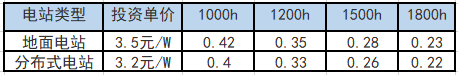 2020年不同利用小時(shí)數(shù)下的度電成本測(cè)算: