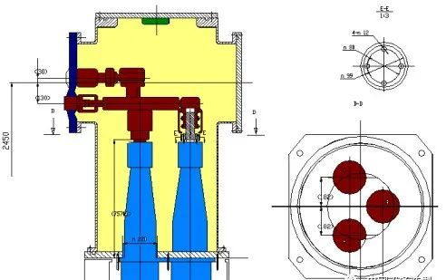 母線采用三相共箱式結(jié)構(gòu),導(dǎo)體連接采用表帶觸指,梅花觸頭。殼體材料采用鋼筒及鑄鋁殼體低能耗材料,三相共箱式結(jié)構(gòu)可避免磁滯和渦流循環(huán)引起的發(fā)熱,采用主母線落地布置結(jié)構(gòu),降低了開關(guān)設(shè)備高度,縮小了開關(guān)設(shè)備占地面積,在適當(dāng)位置布置金屬波紋管。